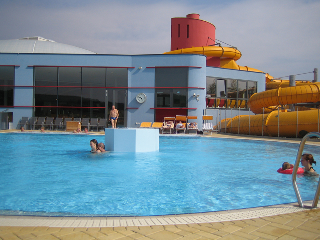zwei Bohrungen und speisen damit sieben Thermalbade- und Schwimmbecken.